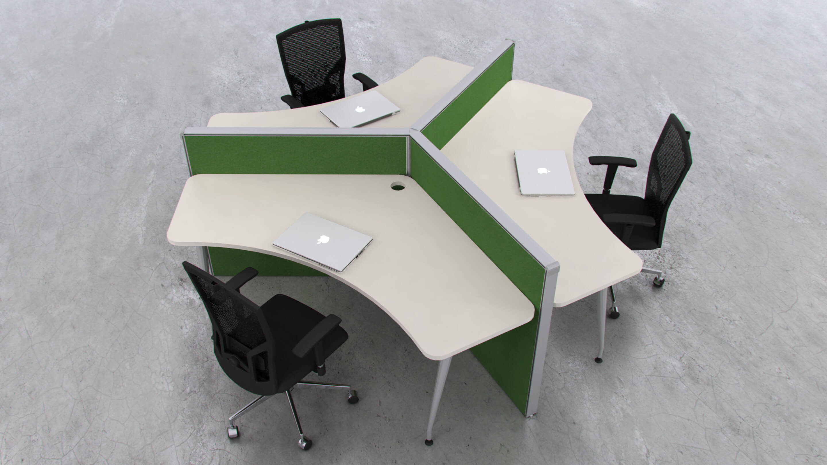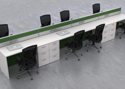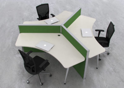 Cuenta entre sus opcionales con la posibilidad de canalización eléctrica continua con acceso desde el plano de trabajo por medio de bandejas pasacables y tapas rebatibles para las conexiones. De diseño minimalista, pero conservando la calidez que ofrecen sus materiales de fabricación, le aportan un renovado carácter logrando espacios corporativos que motivan a la creatividad y el trabajo en equipo.