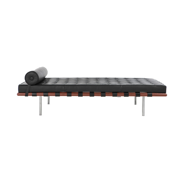 Características: Cama de día, estructura de madera, patas de acero cromado y espuma de poliuretano.