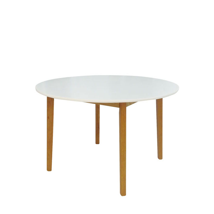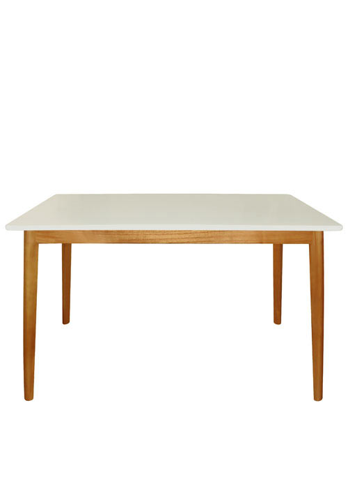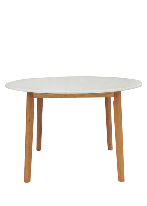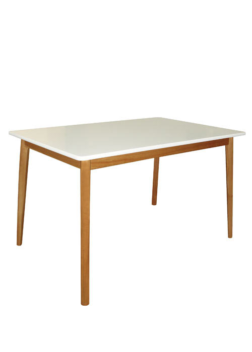 Tapa blanco mate. Patas de madera natural.
